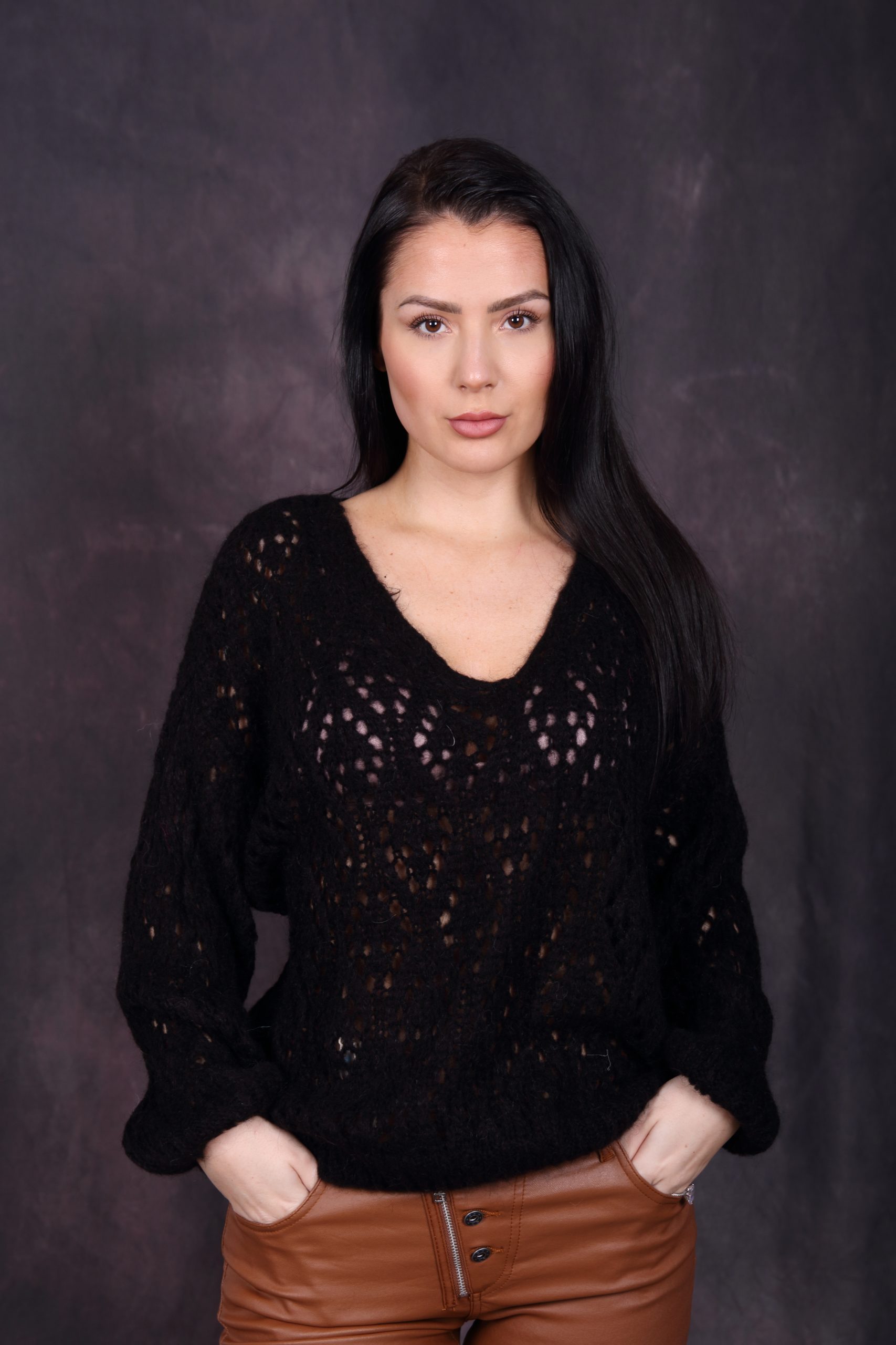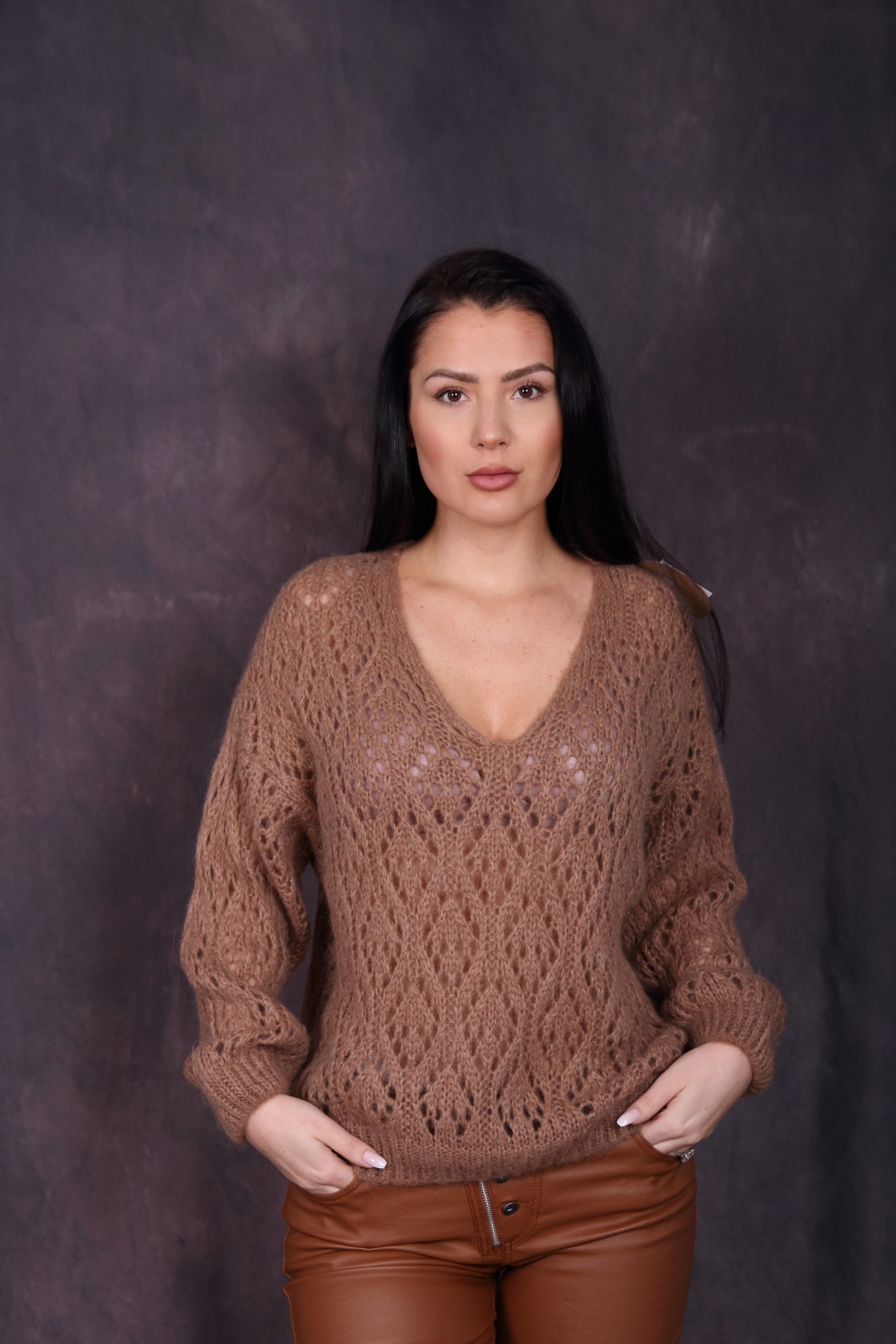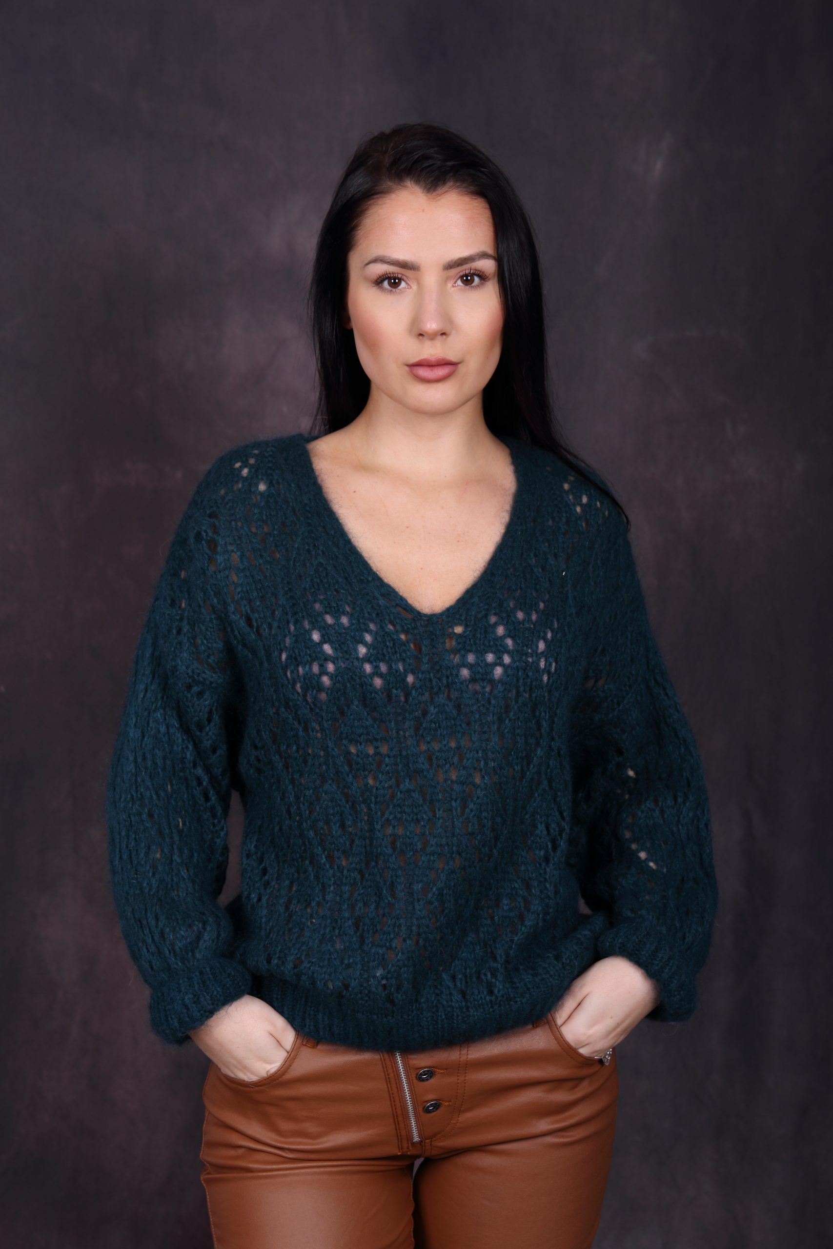 Pull ajouré col V.